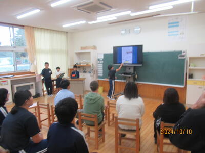 10月10日(木)に5年生が国語の学習成果を発表しました。地域のことについて調べ、考えた内容を発表資料としてまとめたものを、昼休みに発表会として実施しました。