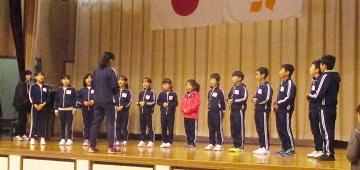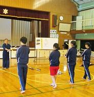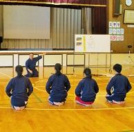 剣道と言えば、本校小学校の教頭は七段の達人です。昨年に引き続き、剣道指導を担当してくれます。最初が肝心。体育館の中は、凜とした空気が張り詰め、所作から基本動作までを身につけていました。