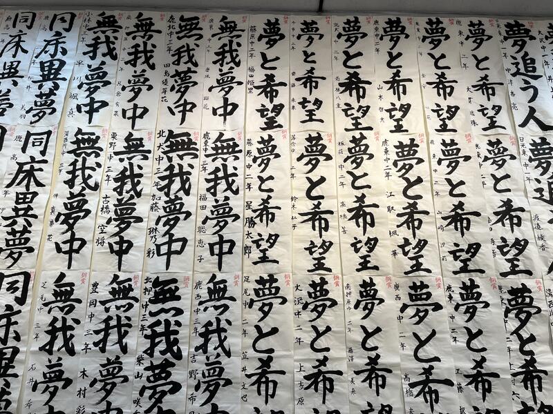 上都賀地区書道展の優秀作品が選出され、本校の生徒作品も展示されました。皆さんの力作すばらしいです。