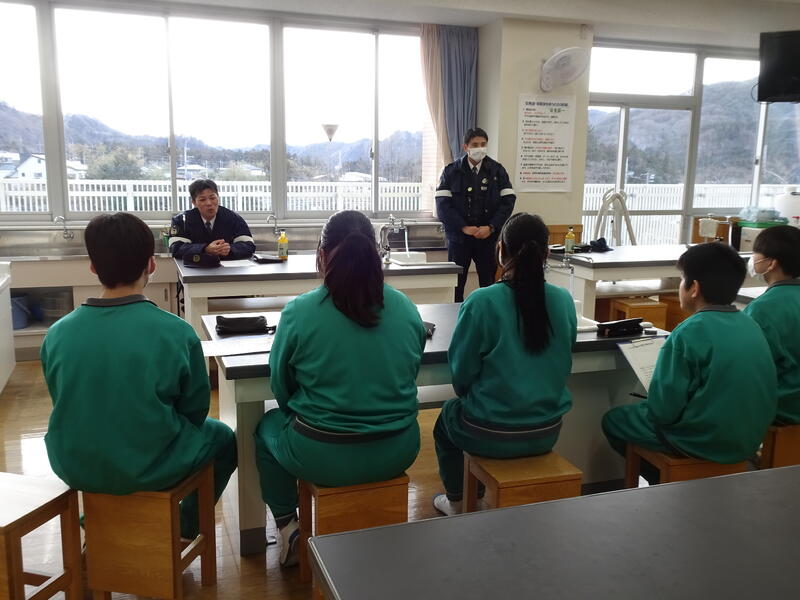 2月6日(木)3,4校時を利用して5事業所(保育園、自動車整備会社、警察、AI関連、市役所)の方々が御来校いただき、個々の職種について説明をしてくださったり、生徒からの質問に答えてくださったりしました。次年度の、マイチャレンジにつながる経験となりました。ありがとうございました。