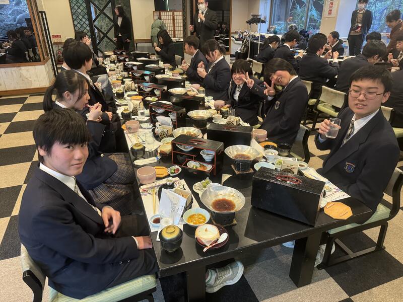 2月7日(金)に立志記念行事として、和食テーブルマナー教室を鬼怒川パークホテルズにて行いました。前日の立志式も緊張感漂うなかで、凜とした雰囲気の2年生でしたが、テーブルマナー教室でもやや緊張しつつも目をきらきら輝かせていました。大女将、若女将、社長様をはじめとする、パークホテルズ様のホスピタリティーあふれるお祝いムードに感謝の気持ちをどう表せば良いのかわからないくらい、一人ひとりが感激していました。