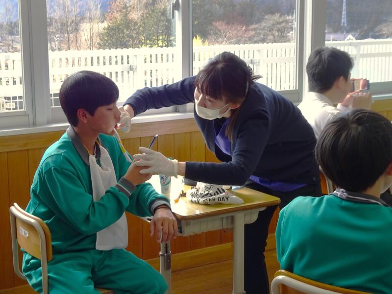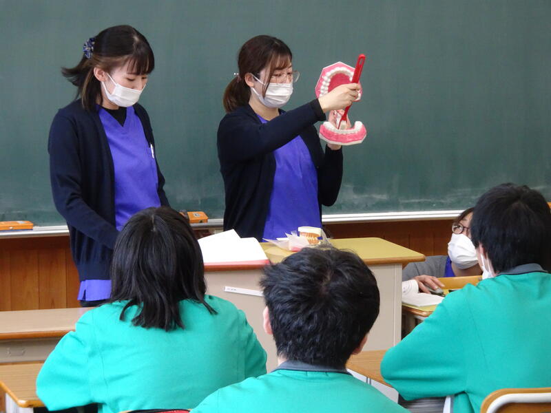 指導者として、本校の学校歯科医である鈴木歯科医院の鈴木郁男先生と歯科衛生士3名の方においでいただきました。