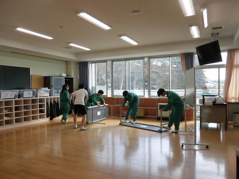 3月11日(火)の第78回藤原中学校卒業式に向けて、2年生が会場を準備してくれました。手際よく準備が進んでいました。素敵な会場ができました。ありがとうございます。会場準備を終えた後は、2年生が学年レクリエーションとして校庭に出て、「泥棒と警察=どろけい」を楽しそうにしている姿が、とてもほほえましかったです。