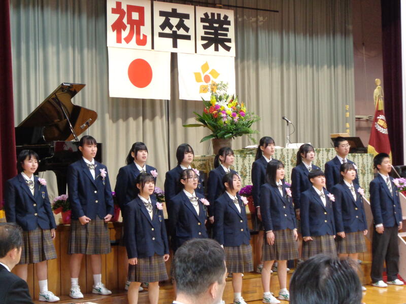 高原山の雪解けとともに、春の訪れを感じさせるこの良き日。35名の卒業生が本校を巣立っていきました。優しく、素直で人懐こい、素敵な卒業生の皆さん。新しいステージで、皆さんが未来を切り拓いていくのを藤原中の職員一同願っています。本日、御来賓としてお越しいただきました小又隆一PTA会長、学校評議員斎藤和義様、大塚一明様ありがとうございました。PTA会長からの素敵な祝辞は、会場にいた皆さんの心に響きました。ありがとうございました。重ねて御礼申し上げます。プロの演奏家である石下有美様のエレクトーンによる生演奏も、しっとりとした卒業式に花を添えていただきました。(卒業生の皆さんが、合唱コンクールで歌った歌をアレンジしてくださいました。)