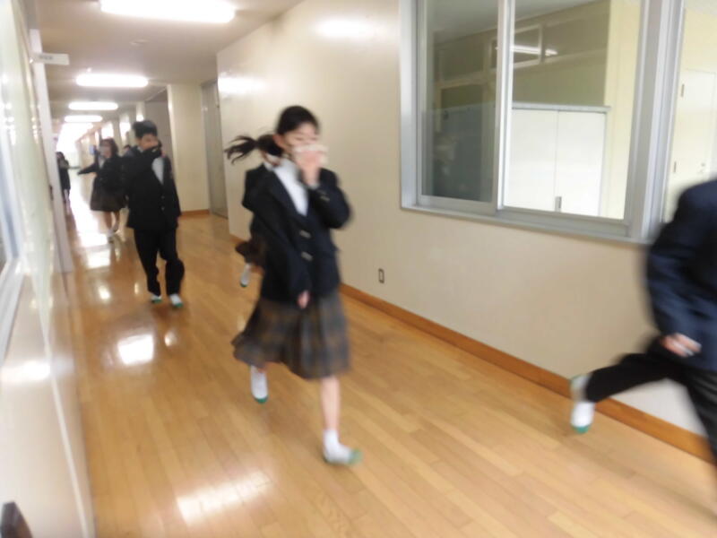 4月23日(水)5校時目に避難訓練を行いました。地震と火災発生という設定で行いました。避難放送から3分以内の避難ができました。100名以上の避難訓練でしたが、誰1人ふざけている人のいない真剣なすばらしい訓練でした。本校生徒の良さを、更に感じた1日でした。