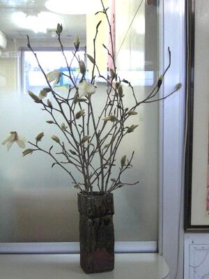 クリスマスツリーを連想させる色合いの素敵な生け花です。