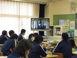 生徒会役員として実現したいことを述べ・・・教室ではモニターで聴き・・・・。