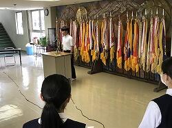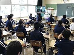 ↑ 多くの生徒達は教室からTV越しに参加。椅子に座れる上、各委員長の顔もはっきり見えるので「教室での参加はとてもいい。」という生徒も数多くいます。教室の拍手は委員長にまで届きます。