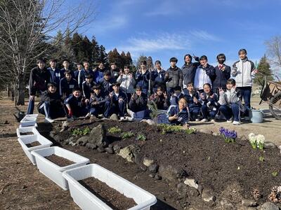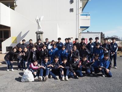 午前中(3~4時間目)は各学級で計画した記念行事。コンセプトは「『立志式の日、こんなことやったね』と思い出に残る活動」。ゴミ拾いで奉仕したり、学校に記念花壇を造成したり、地域再発見ウォークラリーをしたりと、短時間ながら思い出に残る活動ができました。