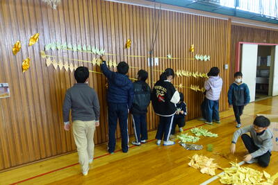 1~4年生は給食終了後下校し、5・6年生、PTA役員、保護者の皆様、ICMおやじの会、職員で準備をしました。多くの方々にお越しいただいたおかげで、短時間で準備が終わりました。