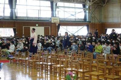 その後は、ミニバスケットボール部とホッケー部の表彰がありました。子供たちは、校長先生のお話も表彰伝達もしっかりとした態度で参加していました。