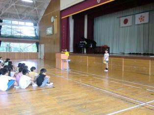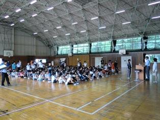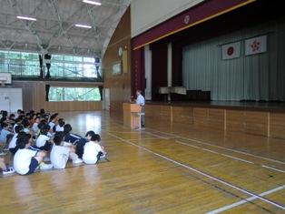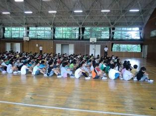 代表の児童2名は、「1学期頑張ったことと夏休みに頑張ること」と題しての発表でした。とてもすばらしい内容でした。校長先生は、「自分は1学期何を頑張ったのか考えること」と、「夏休みの目標を立ててしっかりとした生活をすること」の2つについてお話をされました。37日間を有意義に過ごしてほしいと思います。