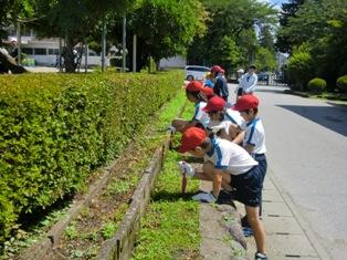 7月1日(火)は天候に恵まれ、二宮デーとして、二宮班(縦割り班)に分かれて除草作業を行いました。子どもたちは一生懸命に取り組み、きれいな学校になりました。
