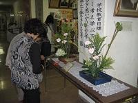 おあしすの方々が、生け花ボランティアに来てくださいました。お二人ともほぼ同じ素材なのですが、それぞれ個性的です。あっという間に生けて、作品ができあがりました。明日は、授業参観があります。保護者の皆様にも見ていただけます。