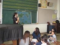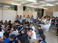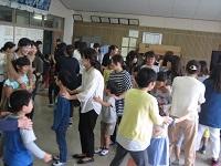 2年生が、第1音楽室で親子学習を実施しました。講師は、国際交流課の斎藤様です。英語でじゃんけんをしたり、じゃんけん列車をつくったりしました。子どもたちは一生懸命手を伸ばし、親子でつながりました。大きな輪ができました。日光市の姉妹都市のラピッド市のお話もしてくださいました。