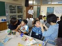 2校時が3年生が第1理科室で親子学習を実施しました。講師は、学校歯科医の湯澤先生です。「どうして虫歯になるのか」や「CO(初期虫歯)からどのようにして虫歯になるのか」などについて話してくださいました。上手な歯磨きの仕方についても模型を使って説明してくださいました。最後に子どもたちは、染め出し液を使って磨き残しを確かめました。そして、歯磨きをし、保護者にも見ていただきました。お母さんが磨き残しを丁寧に磨いていました。親子で学び、より効果的な学習となったようです。