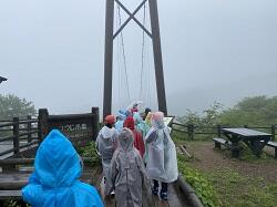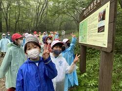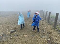 山頂には行けませんでしたが、ちょっとだけ登山をしました。「山をあまく見てはいけない!」絶対にはぐれないように、「団結」の心で歩きました。