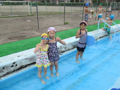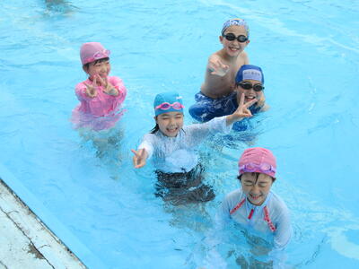 地域の代表者や市教委のお陰で今年度もプールに入れることを、児童及び職員一同大変喜んでいます。