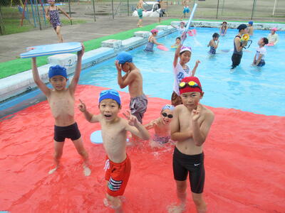 そして、七夕の今日、ついに子どもたちの願いが叶い、プールに入ることができました!