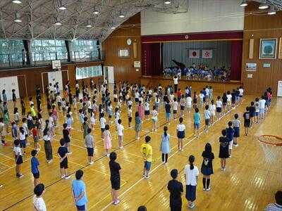 あっという間の1学期でしたが、子どもたちは元気に笑顔で生活し、大きく成長したことと思います。Imasho go ahead.このように今日を迎えることができたのは、学校に対しての協力を惜しまず温かく見守ってくださった保護者・地域の皆様のおかげです。本当にありがとうございました。これからもご支援ご協力どうぞよろしくお願いいたします。そして、児童のみなさん、夏休みを有意義に過ごし、2学期に元気な姿を見せてください。