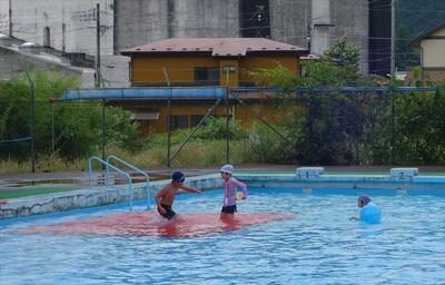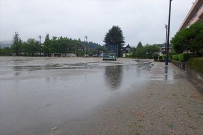 学校では、プールの開放が行われています。30日(金)は9時頃に急に雨が降り出し、校庭には水たまりができてしまいました。それでも、プールを楽しみにしていた子が来て、悠々と泳いだり遊んだりしていました。今日の利用人数は少なかったですが、連日多くの子どもたちが来てプールを楽しんでいます。子どもたちの楽しそうな表情を見ると、プールが使用できることのありがたみを改めて感じさせられます。8月5日(木)、6日(金)は地域の方々への開放も計画されています。皆様でお誘い合わせの上、ぜひ入りに来ていただけたらと思います。