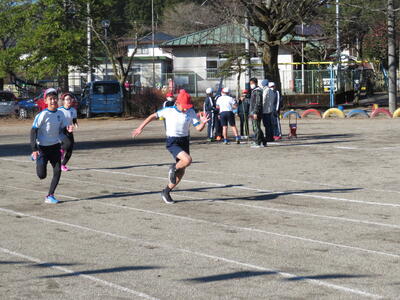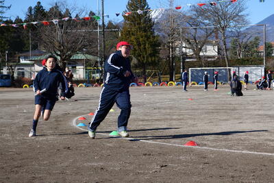 当日は、日光連山にうっすら雪がかかっているのが分かるほど、雲一つない澄み切った青空のもと、これ以上にないコンディションで実施できることになりました。(5・6年生の日頃の行いがよいからでしょう。)開会式において、石川校長先生からは、「ぜひこの大会を楽しんでほしい。よい思い出にしてほしい。」との話がありました。