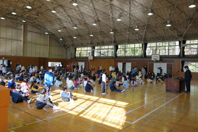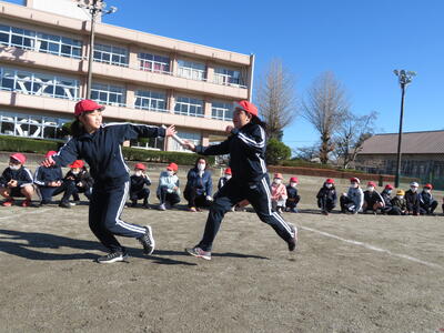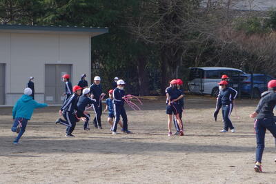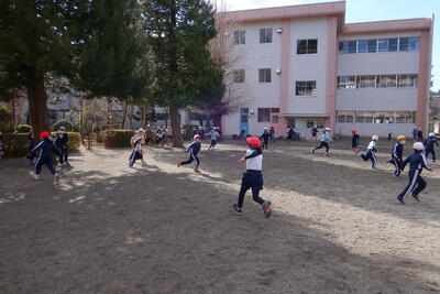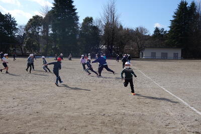 前回の体育集会では全員で「鬼ごっこ」を実施しましたが、今回は低・中・高学年に分かれて実施しました。しっぽとり鬼、ふやし鬼など各ブロックで工夫しながら「鬼ごっこ」を楽しんでいました。
