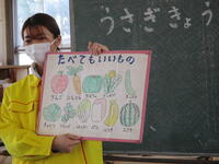 初めは、うさぎの食べ物についての話を聞きました。クイズも交えながら、楽しく学ぶことができました。