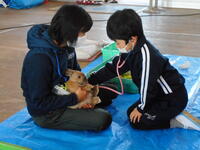 聴診器を使って、静かにうさぎの心音を聴きました。昨日聴いた自分との違いも感じられたようです。