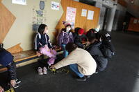 今シーズン初めてのスケート教室、特に1年生は今市小での初めてのスケート教室でした。スケートリンクには靴ひもしばりボランティアとして保護者の方がたくさん来てくださり、スケート靴を履く手助けをしていただきました。また、けがをした児童の手当てもしていただき、本当に助かりました。