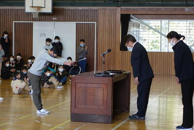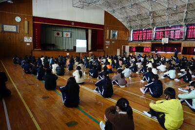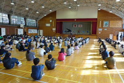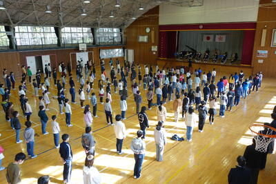 12月24日(金)に第2学期終業式がありました。長かった2学期も今日で終わりとなります。教室での子どもたちの表情は、クリスマスや冬休みを楽しみにしている様子がうかがえましたが、体育館に入ると気持ちを切り替え、厳かな気持ちで臨んでいました。