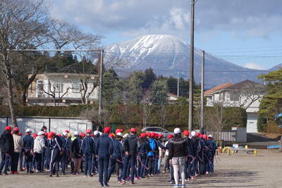 12月22日(水)に体育集会がありました。男体山の雪がグラデーションのようにはっきりと見える天気のよい日に実施することができました。