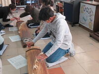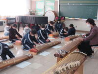筝の学習では、5年生は「さくらさくら」、6年生は「越天楽今様」の曲を練習しました。