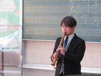 尺八の学習では、例福田先生による尺八の歴史や奏法のお話を伺いました。