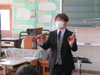 和久先生と福田先生による「春の海」を鑑賞しました。一流の音楽家の先生による演奏に、児童は眼を凝らして演奏の様子を見、音を真剣に聴いていました。最後に、福田先生がコロナ禍の中、様々な思いを込めて作曲された「やたがらす」という曲が印象的でした。激しさや優しさなど様々な曲想が表れており、聴いていて心の中に響いてきました。