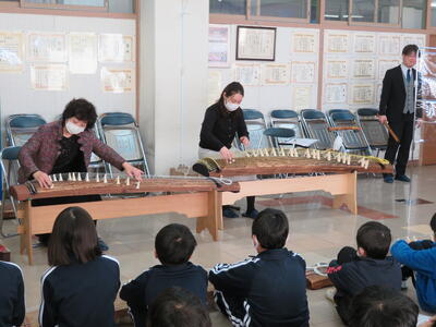 各学年とも、筝の体験学習及び講師の先生による筝・尺八演奏の音楽鑑賞を行いました。
