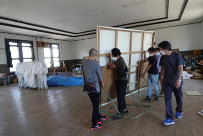 いよいよ明日今市小の創立150周年記念式典並びに記念講演会が行われます。前日の10月1日(土)に、今市小PTAと教職員で会場となる今市文化会館で準備を行いました。来賓の席札貼り、懸垂幕・横断幕張り、音響・映像のテストなど、念入りに行いました、また、記念事業として子どもたちとumiさんの共同で制作した絵画もPTAのみなさんが丁寧に運び、作品に枠が取り付けられました。今や日本を代表する画家としてご活躍されているumiさんと児童による素晴らしい作品を明日会場入口でご披露いたしますので、ぜひご覧になってください。