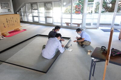 umiさんと完成した作品 作品を鑑賞する子どもたち 如来寺の御朱印