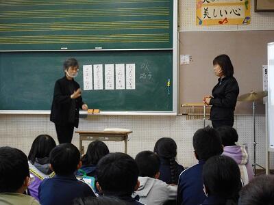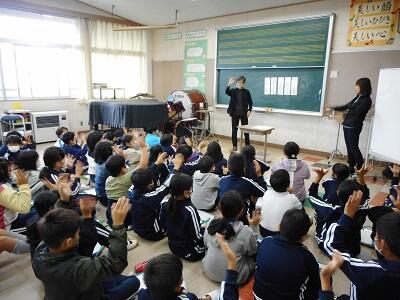 代表の児童が、遊びの体験をしましたが、小椋様の足さばきのかっこよさに驚いていました。
