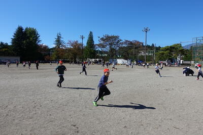 短い時間でしたが、全校生が校庭を走り回り運動量も十分な体育集会となりました。これからも、体力向上のためにどんどん運動に取り組んでほしいものです。