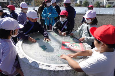 子どもたちは、CP(チェックポイント)ごとの課題に挑戦しました。校長先生の王様じゃんけん、的当て、今小クイズ、記念写真、トランプ数あてゲーム、坊主めくり、ジェスチャーゲーム、横断歩道検定試験、朝鮮通信使クイズ、輪投げ、宝探し、神社クイズなど盛り沢山の内容でした。二宮班の6年生(班長)を中心にチェックポイントを目指し、話し合いながら協力し合って、さまざまな課題に取り組んでいました。