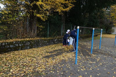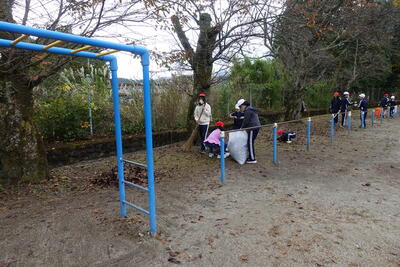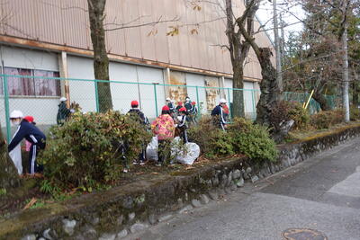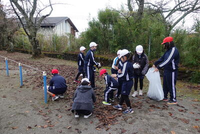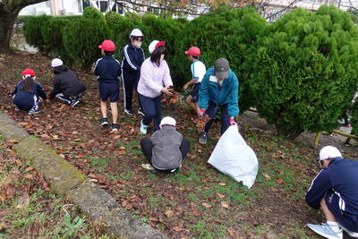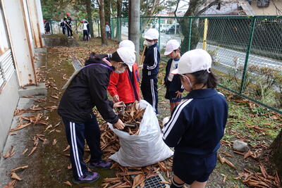 二宮班ごとに場所を分担し、みんなで協力してきれいにしました。銀杏がたくさん落ちている場所が特に大変そうでしたが、よくがんばっていました。どの班も班長を中心に最後まで働くことができました。