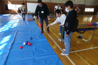用意されたプログラムは、スポーツコーナー(モルック、ボッチャ)、ぞうきんレース、べっこう飴作り、松ぼっくりアート他、日本の色を知ろう(色のたし算)、お抹茶体験、わくわく科学実験、大型絵本他、と盛りだくさんで子どもたちが楽しめるものでした。子どもたちは、どのプログラムにおいても笑顔で友達と活動していました。