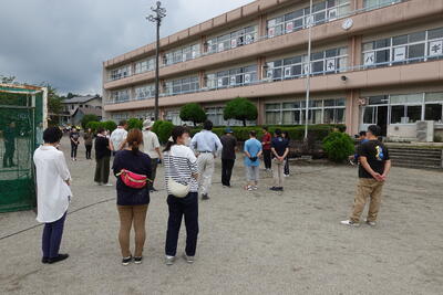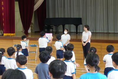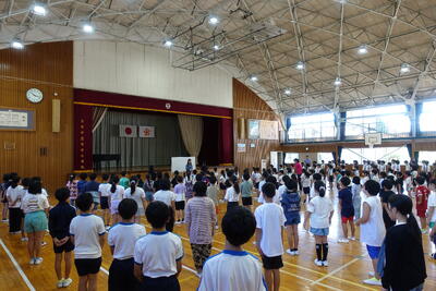 9月5日(木)の広場の時間に朝会がありました。どの学年も落ち着いて体育館に入場し、静かに待つことができました。