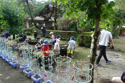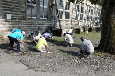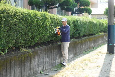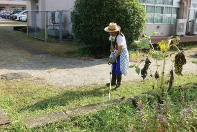 今年も雑草の生育が大変よく、根がしっかりとし校庭が草原のようになってしまい大変でしたが、多くの方の協力のもとがんばりました。草刈り機やトリマーなどで、校内の植え込みもきれいに剪定するとともに、校内のトイレもきれいにしていただきました。