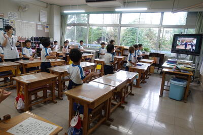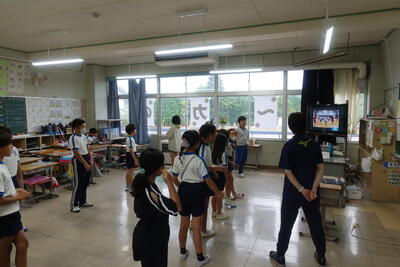 9月19日(火)に応援合戦の全体練習をしました。雨のため校庭が使えないことから、各学年色ごとに集まり、オンラインで練習をしました。接続の問題で音声が途切れてしまうこともありましたが、応援合戦の流れが分かったことと思います。