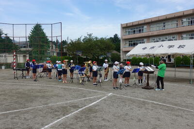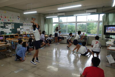 9月25日(木)に今小和楽踊りの練習をしました。音楽はワールドクラブのみなさんの生演奏でした。ワールドクラブのみなさんは、クラブの時間だけでなく、夏休みに平ヶ崎お囃子保存会の方々から御指導をいただき、笛や太鼓、歌唱の練習をしてきました。その練習のおかげで、演奏や歌唱が上手にできました。