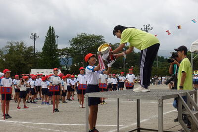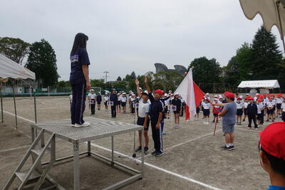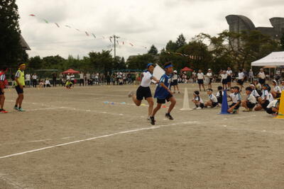 ☆5・6年今小タイフーン ☆4色対抗リレー ☆優勝旗授与