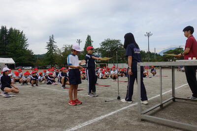 9月28日(土)の運動会に向けて最後の全体練習が27日(金)に行われました。子どもたちはとても集中して練習に取り組んでいました。