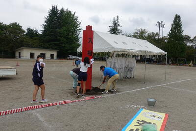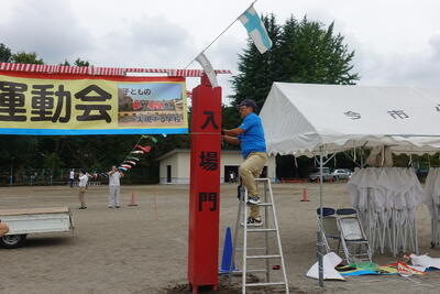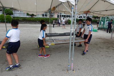5・6年生は体育館や会議室から机といすを運び、グラウンドの整備(ならし、石拾いなど)をしました。みなさんのがんばりで予定よりも早く会場の準備ができました。準備にご協力いただいた皆様、本当にありがとうございました。